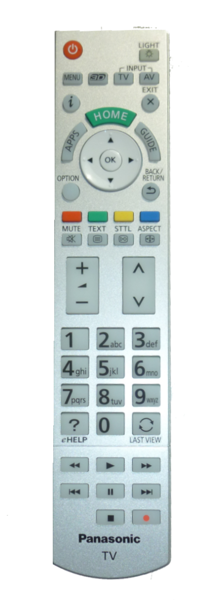 Fjernbetjening til Panasonic TV TX-L42DT60Y, TX-L42FT60 TX-L47DT60Y, TX-L47FT60 TX-L50DT60Y, TX-L55DT60Y, TX-L60DT60Y TX-L47WT60E, TX-L55WT60E, TX-47AS800E, TX-55AS800E TX-60AS800E, TX-L65WT600 Er desværre udgået fra Panasonic, vi leverer i stedet Sinox SXR-1250 som erstatter den.